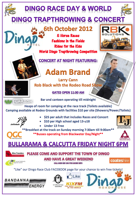 DINGO RACE DAY, WORLD DINGO TRAPTHROWING AND CONCERT.