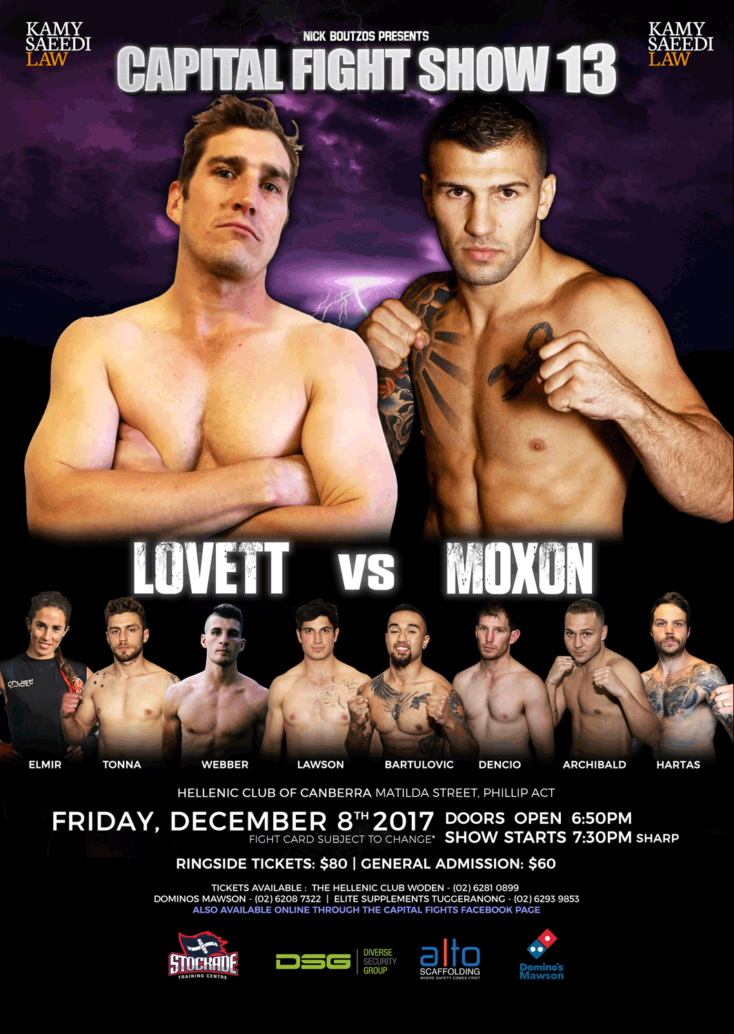 Warning Oh, no! You don't have JavaScript enabled!Javascript is required to use this website and to purchase tickets. Share Tweet Dec 08 Capital Fight Show 13 Fri. 8 Dec, 2017 7:30pm - 10:30pm AEDT All Ages All Ages Get Tickets Details Event Stats All Ages Event Description Comments Select Tickets Sorry, this event has already taken place. Venue Details Erindale Theatre McBryde CresWanniassa, ACT 2903