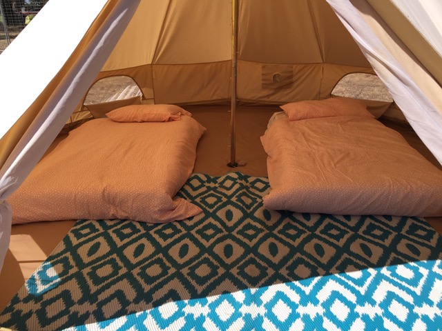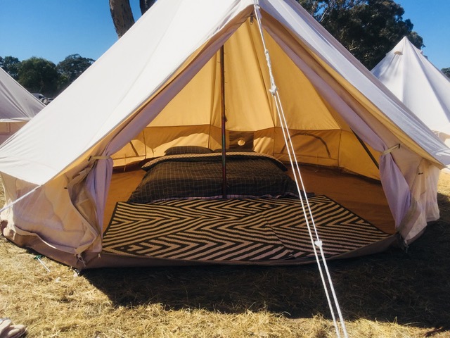 Wow Tents will pre-pitch your cosy canvas bell tent before you arrive site, meaning you can arrive and settle in straight away. The 5m Bell tent fits up 5 people so perfect for a group of mates or a family.Each tent comes with LED lights, carpet, fly-screen doors and detachable ground sheet - so you can roll up the walls and enjoy a breeze on those hot summer days.BYO beds/bedding, or add foam mattress & bedding packages at checkout for maximum comfort for less fuss - no more airbeds! Singles and Doubles (for 2 people) available. Please order your required bedding packages in advance of the festival as there will be no spares on site.