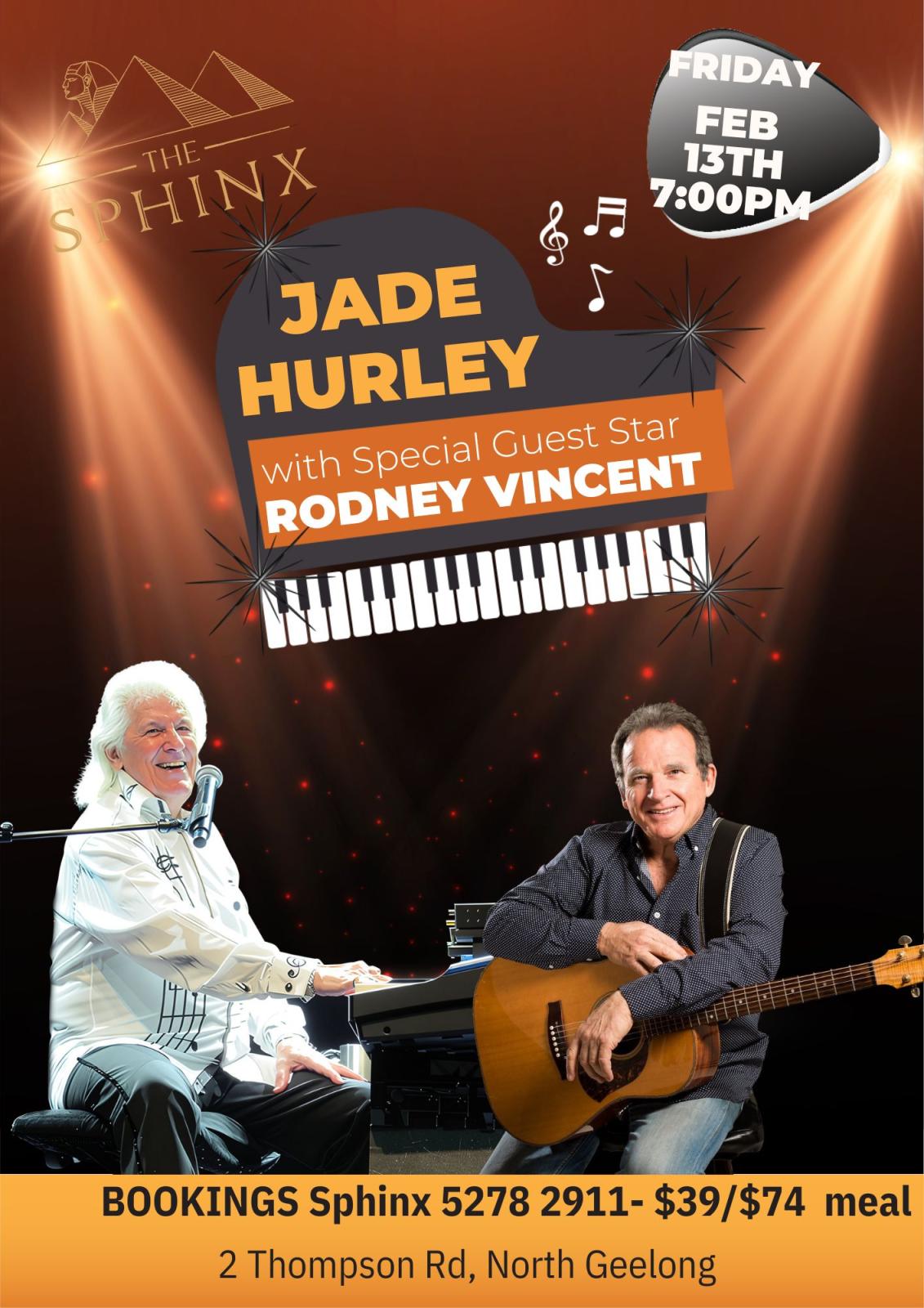 Get ready for a toe-tapping, feel-good evening as two of Australia’s most loved entertainers — Jade Hurley OAM and Rodney Vincent — join forces for a show packed with music, laughter and memories!