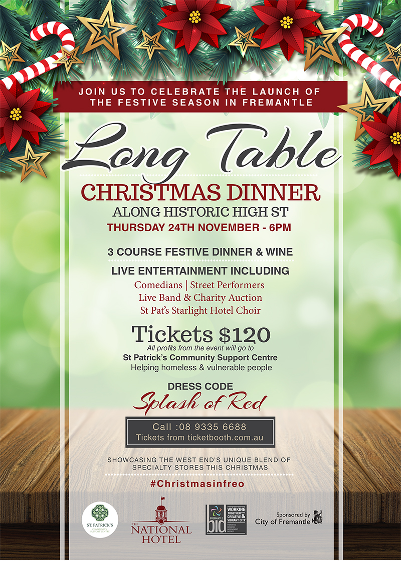 Be involved in this unique event to launch the Christmas festivities in Fremantle. There will be photo opportunities galore as we enjoy a sumptuous 3 course Christmas dinner with all the trimmings, whilst watching the sun set over the Round House. There's a fun filled line up of entertainment including comedians, street performers, live bands and VIP guests. There is also the chance to bag some Christmas bargains at the charity auction as we encourage you to "Gift Local" this Christmas.