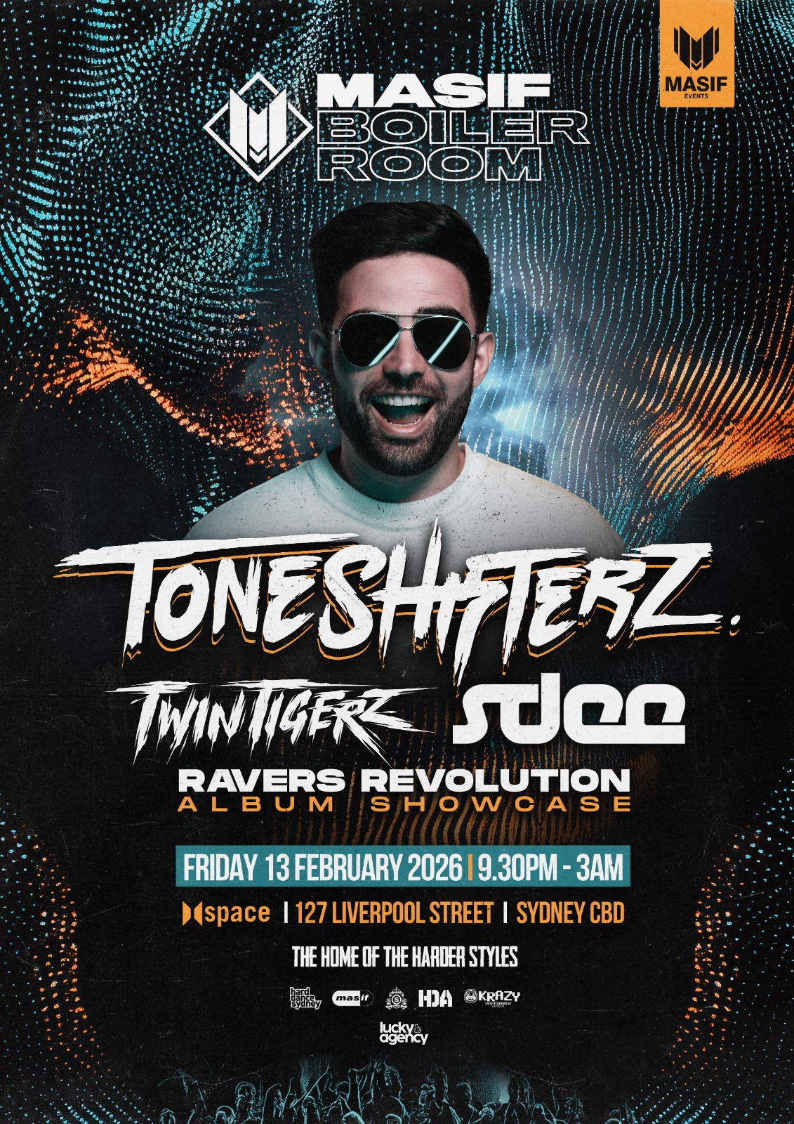 MASIF present the return of one of AUSTRALIA's biggest HARDSTYLE exports...TONESHIFTERZ! In true MASIF BOILER ROOM style...this will be an event not to be missed...fresh from releasing his new album and penned hit with the KNOCKOUT OUTDOOR anthem...both rooms will be cranking on this special night! See YOU there!