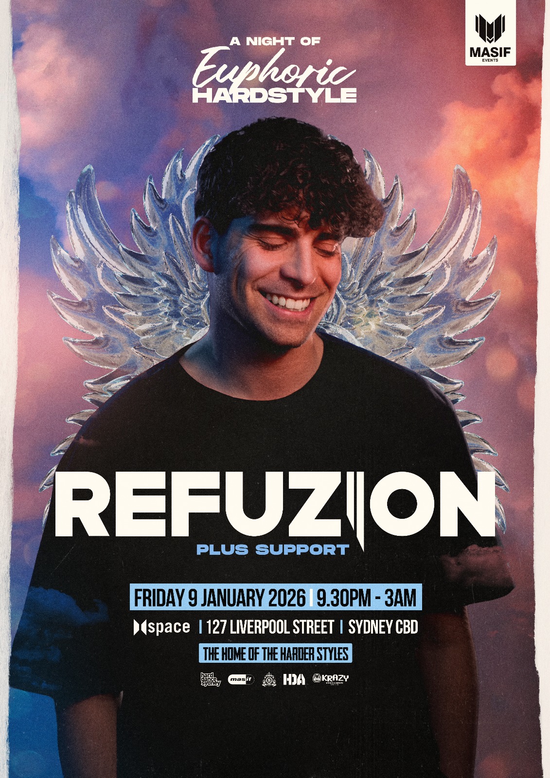 MASIF presents A NIGHT OF EUPHORIC HARDSTYLE with REFUZION jetting in from Europe to play past, present and future productions alongside Sydney's finest! What a way to kick off our 2026 events...