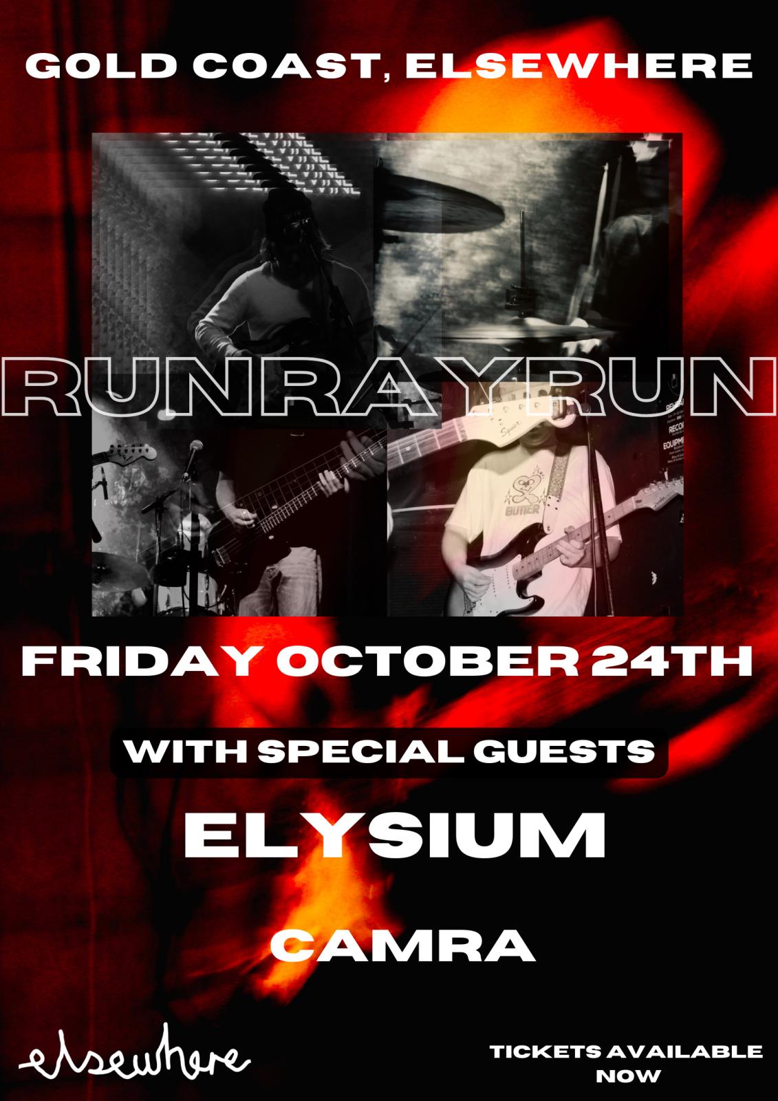 Local up and comers Run Ray Run are returning to Elsewhere this October to give their fans and the Gold Coast community a fired up start to the Gold Coast 500 weekend. After the release of their debut single ‘In The Haze’, Run Ray Run look to build their momentum and give the Gold Coast a taste of a fresh alternative rock sound, with their sets ranging from slower melancholic pieces to high energy dirty tracks. Joining them on October 24th is Gold Coast band Elysium and Brisbane act CAMRA, both providing their own unique styles of rock/ indie who are guaranteed to bring the energy. Come and get the GC500 weekend kicked off on a high with Run Ray Run to serve up a solid Friday night of music!