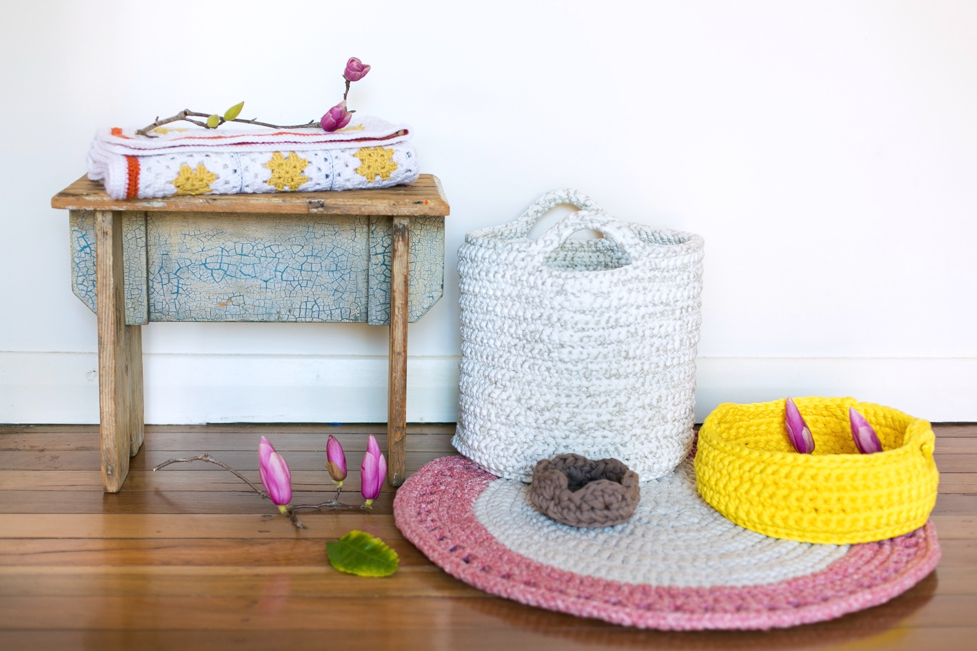 Join Núria and learn to make fabulous decorative homewares using large-scale crochet.