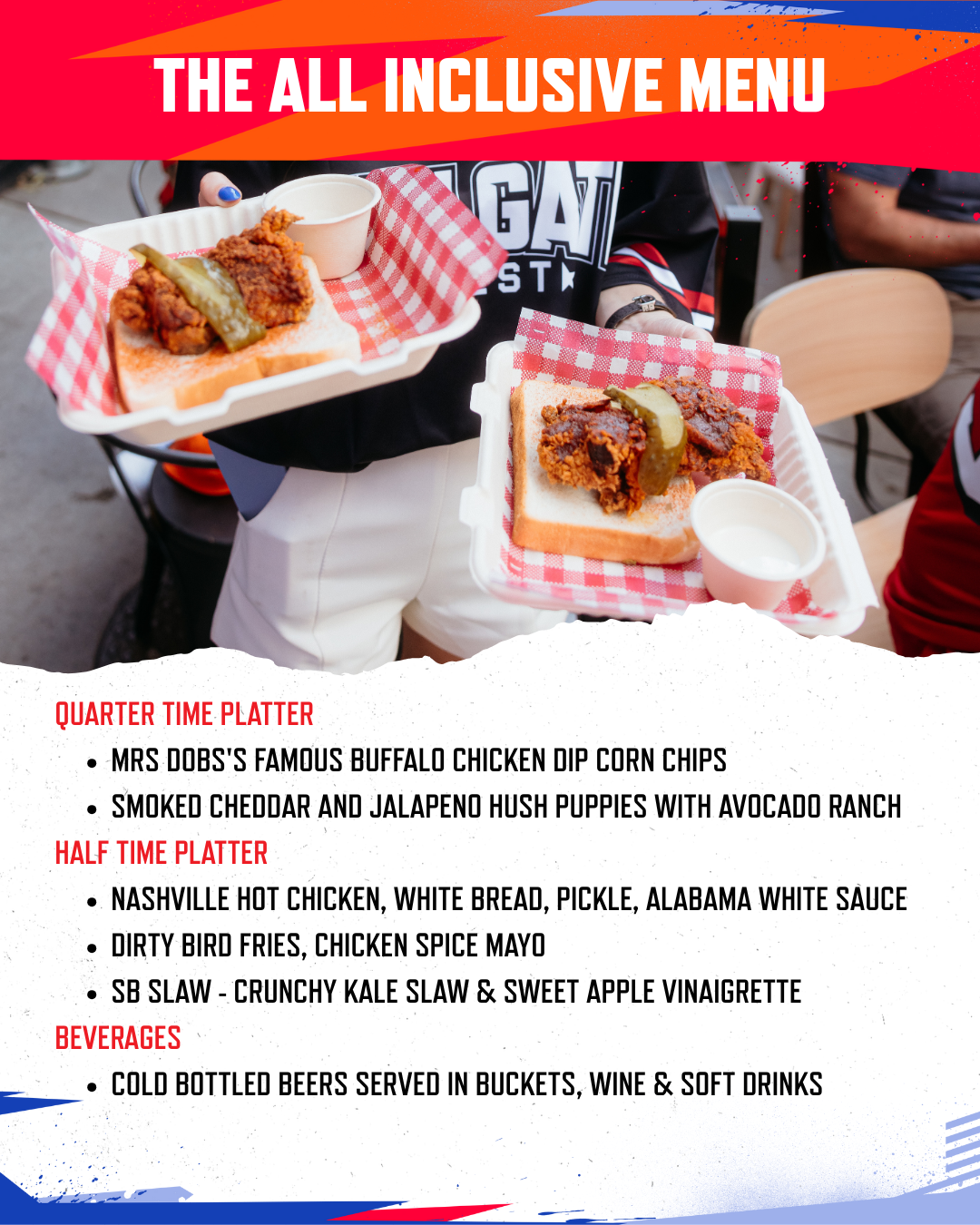 All-Inclusive guests will enjoy a full American feast packed with game-day classics and southern-style favourites served straight to the table.