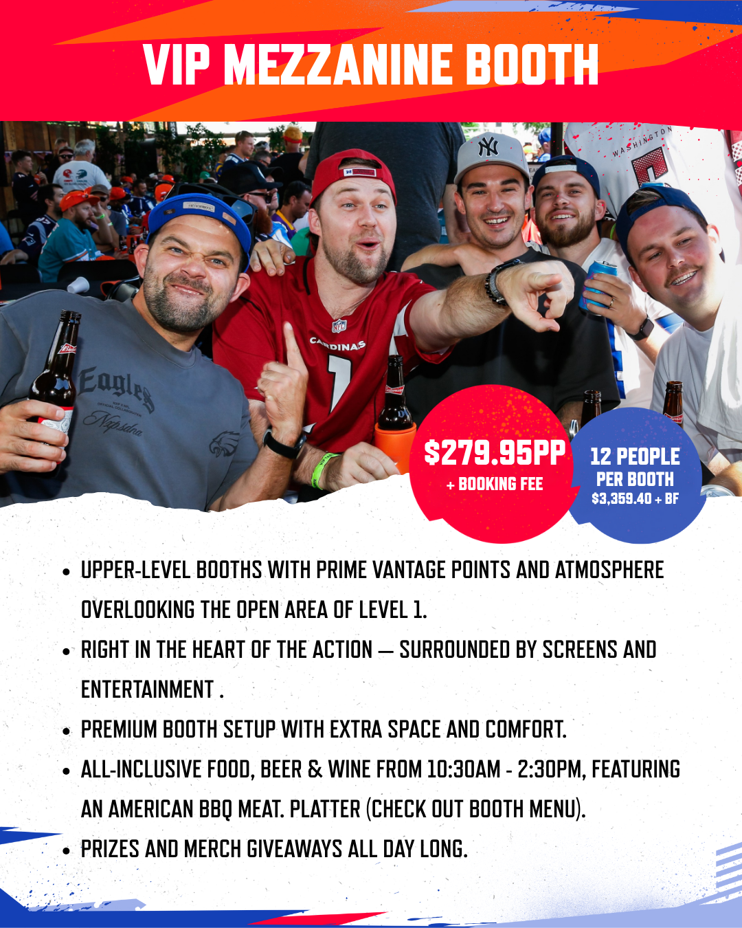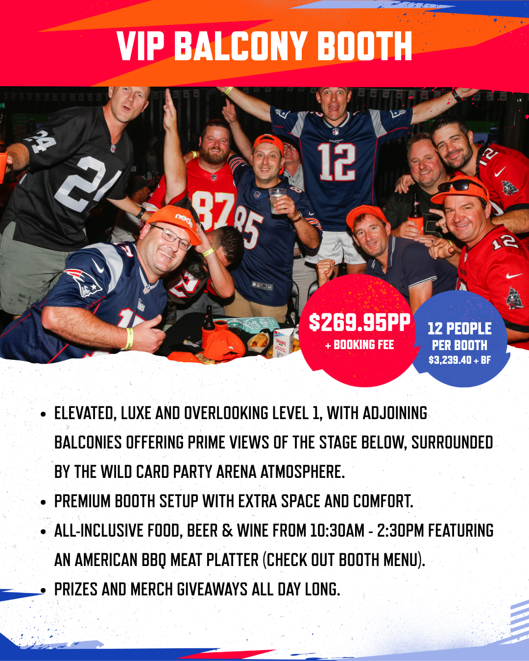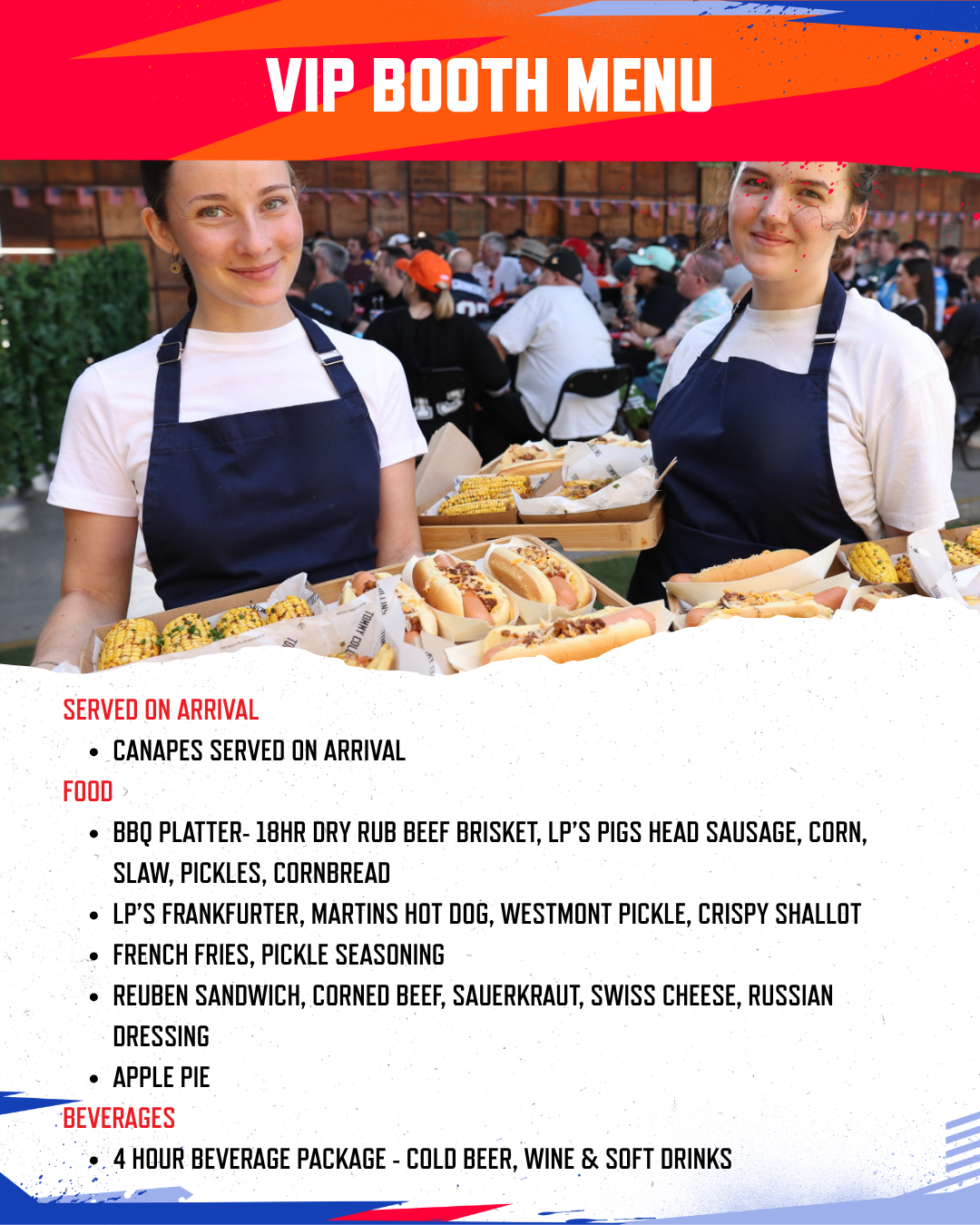 Reserved Table and Booth guests will be treated to an American feast loaded with game-day favourites and crowd-pleasing classics.