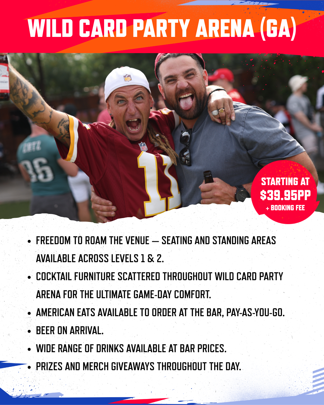 For those in the Wild Card Party Arena, The Ivy will be serving up American-inspired eats all day long, pay-as-you-go style.