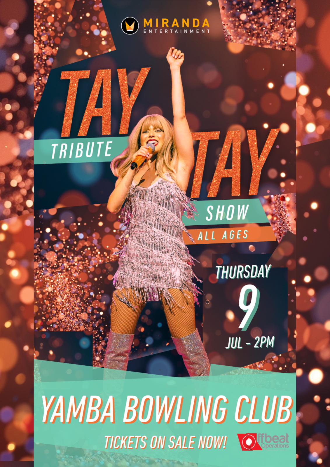 FAMILY FRIENDLY ALL AGES EVENT With a full rock band comprised of Australia’s finest touring musicians, ’The Tay Tay Tribute Show’ will take you on an ever changing & unique journey as they pump out smash hit after smash hit across each of the eras including: